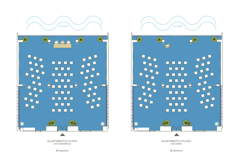 - The panoramic room “Rosa dei Venti”, located on the sixth floor at the Lungomare Hotel, is a unique location with sea view, perfect for launching new products, thematic shows and team building activities.