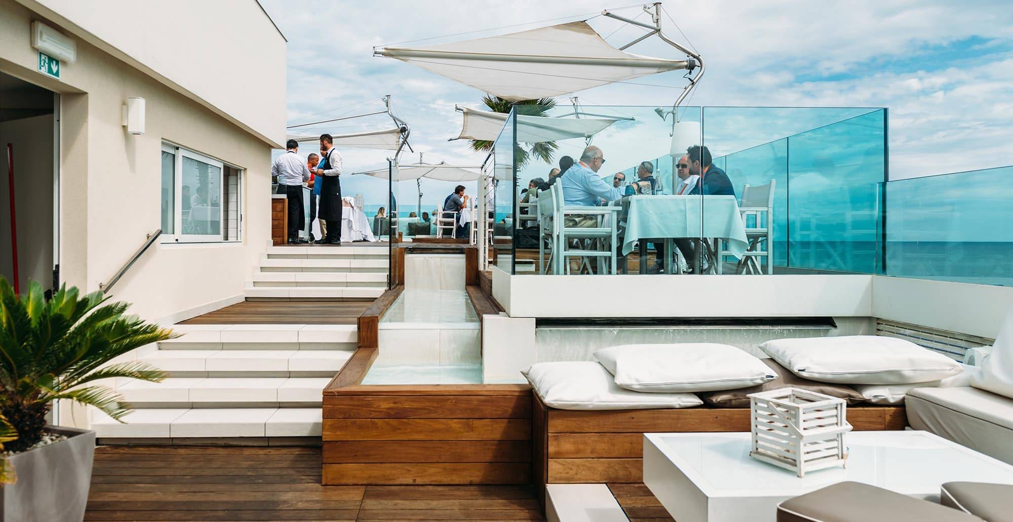 Il ristorante panoramico Settimo piano nel centro di Riccione, sulla terrazza dell’Hotel Lungomare, è il rooftop perfetto per qualsiasi evento che richieda uno scenario unico: il cielo, il mare, il porticciolo e tutta Riccione ai vostri piedi!